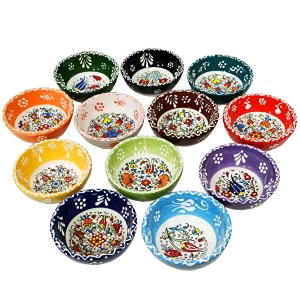 12 Adet Çini Motifli Seramik Sunumluk Kase