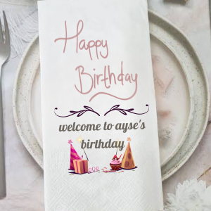 <p>İstediğiniz yazı desen isim uygulanabilmesi için sorular kısmından yazabilirsiniz.</p><p>Peçete ölçüleri:33 x 33 cm </p><p>Katlanmış hali 1/8 Oranındadır.</p><p>20 li Yapışkanlı jelatin poşette gönderilmektedir.</p><p>Paket içi 20 adettir.</p><p>Ürün Özelliği:</p><p>*çift katlı</p><p>*yumuşak</p><p>*sıvı temasına dayanıklı</p><p>*garson boy katlama</p><p>*selüloz kağıt peçete kullanılmaktadır. </p><p>*Baskılar alt katlara geçmemekte üzerinde boya kalıntısı </p><p>bulunmamaktadır.</p><p>Parti, doğum günü, düğün ve tüm diğer özel günler için kullanılabilmektedir.</p>
