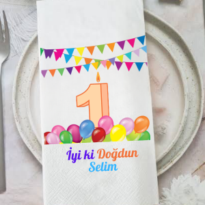 Baskılı Peçete Doğum Günü Temalı Çocuk Bir Yaş Peçetesi 20 adet