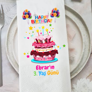 Baskılı Peçete Doğum Günü Temalı Çocuk Üç Yaş Peçetesi 20 adet
