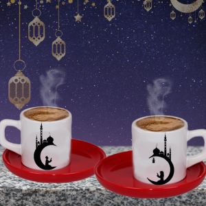 Ramazan Özel Dua Temalı Baskılı İkili Türk Kahvesi Fincanı (Kahve ve ÇikolatalıDraje Hediyeli