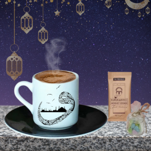 Ramazan Özel Vav ve Şehir Silüeti Temalı Baskılı Türk Kahvesi Fincanı(Kahve,ÇikolatalıDraje Hediyeli